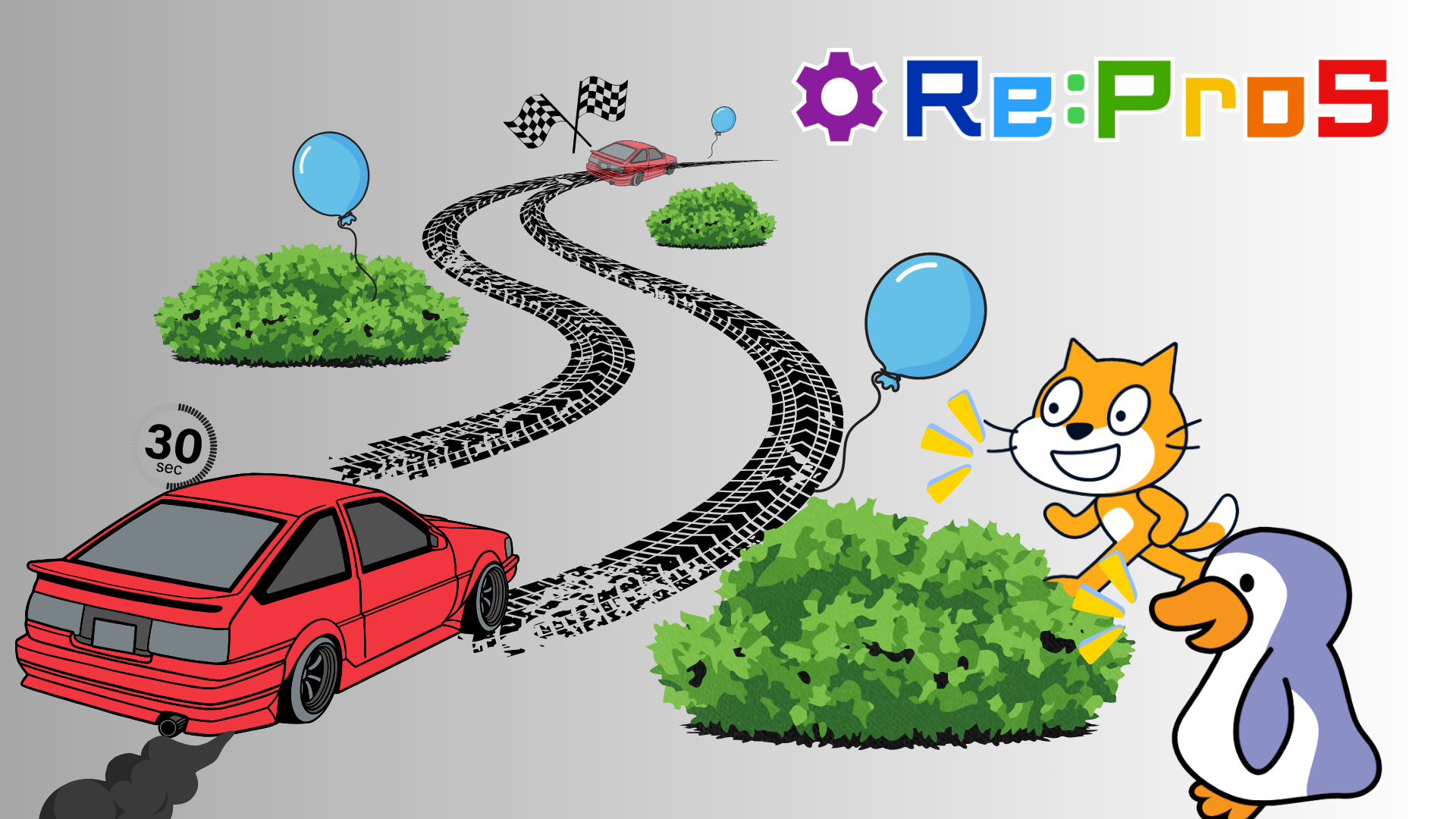 車を操作して最速タイムを目指すタイムアタックゲームをScratch(スクラッチ)で作ってみよう!条件分岐や変数、クローンといったScratchでよく使うコードブロックの使い方をマスターしよう!
