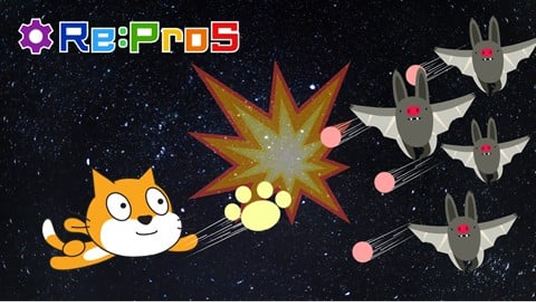 みんな大好きアクションゲームをScratch(スクラッチ)で作ってみよう!移動や攻撃、HPなどゲームに作りに役立つプログラミング方法を身につけましょう!